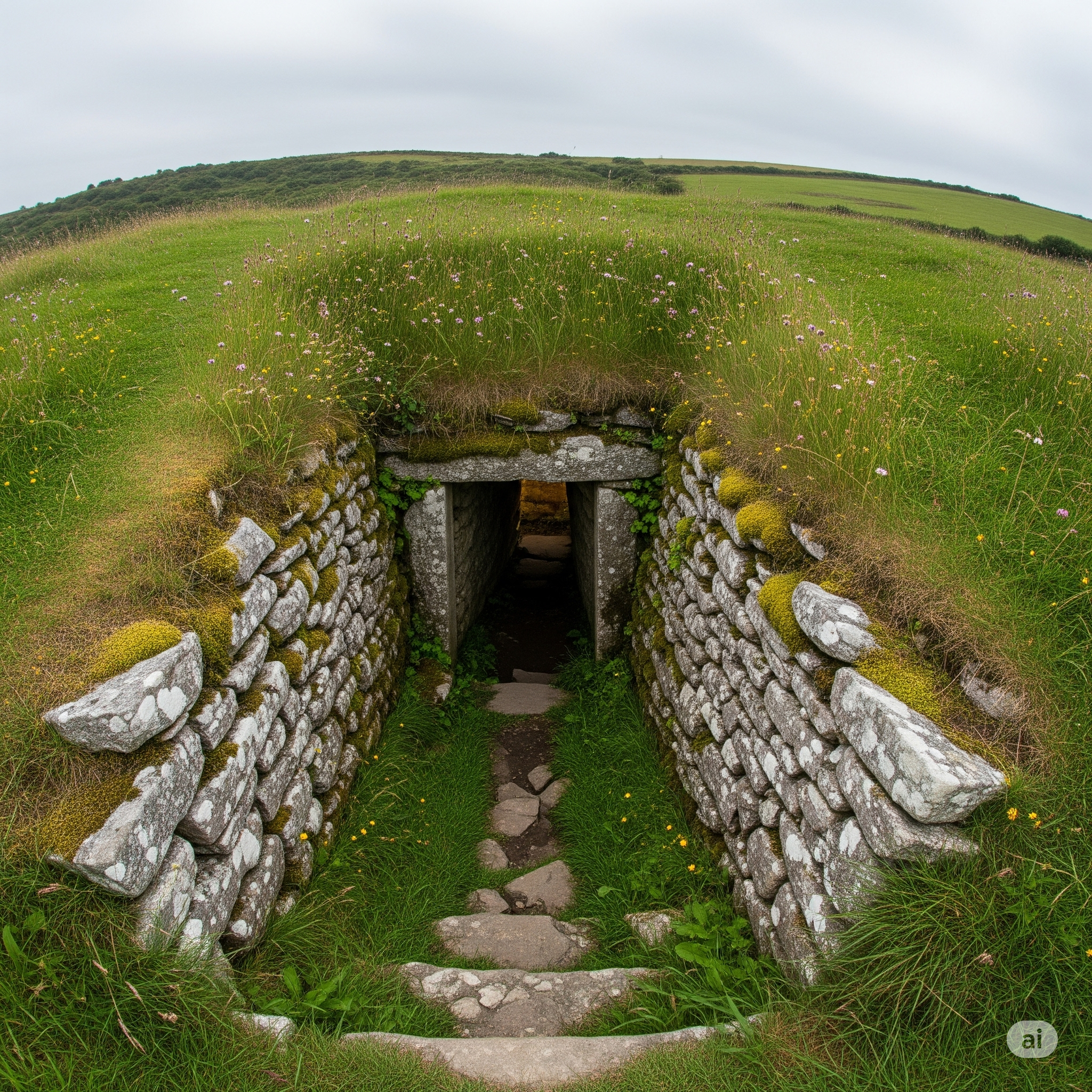 フォゴウとは、コーンウォールの鉄器時代〜ローマ・ブリテン期の集落跡に付属する、石積みの地下通路構造物だ。その外観は地表からはほとんど見えず、芝草に覆われた小さな丘か、岩の隙間にすぎない。しかしその下に潜り込んだ者を待ち受けるのは、精緻に積まれた石の壁と、巨大な石板で構成された天井、そして漆黒の闇だ。